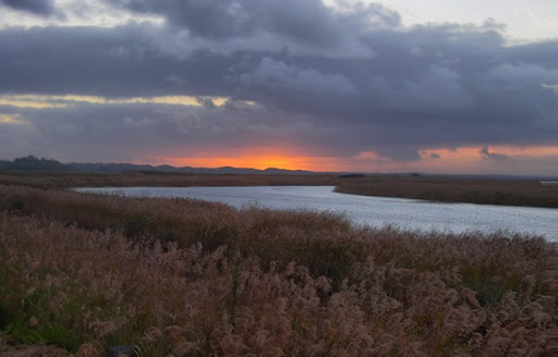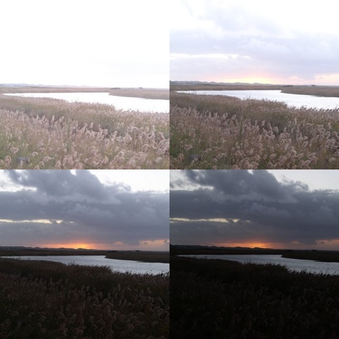 EV (exposed value). In the sequence above both the underexposed images (bottom images) record the intensity of colour in the sky (and are therefore better to convey the moment than the automatically selected exposure above). The downside is the detail in the shadows of the grasses in the foreground is lost.