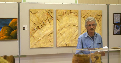 The Venus Bay Contemporay artist show was good for me, I managed to sell all my works (see all the red stickers already at the opening). The Exhibit was open by well know local sculptor Colin Suggett, and had a strong inspiration based around the natural world. My "geological" impression of venus bay in 200 million years can be seen behind colin.