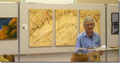 The Venus Bay Contemporay artist show was good for me, I managed to sell all my works (see all the red stickers already at the opening). The Exhibit was open by well know local sculptor Colin Suggett, and had a strong inspiration based around the natural world. My "geological" impression of venus bay in 200 million years can be seen behind colin.